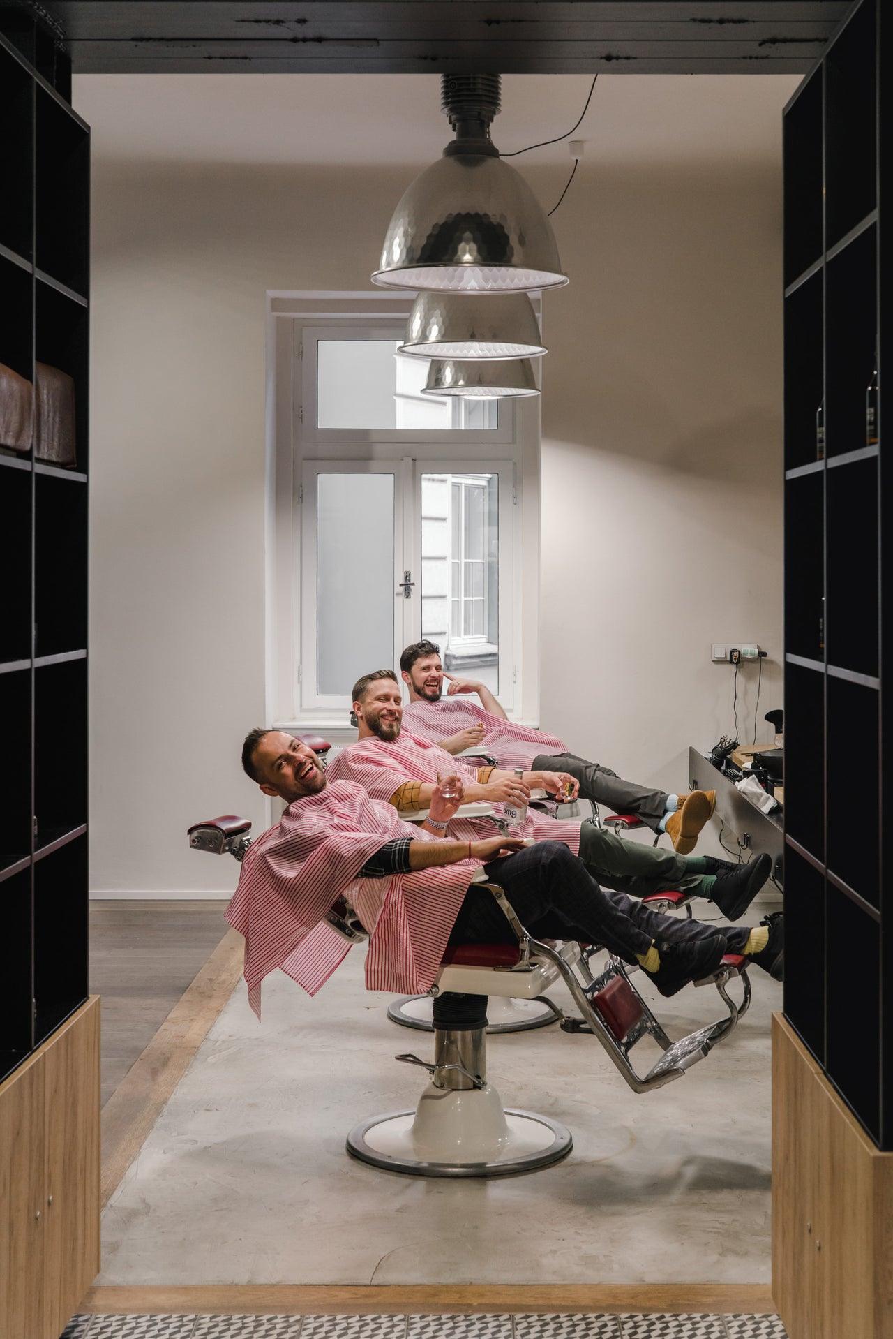 The door of a stylish men's barbershop opens and the main protagonist of the day walks in. He's getting married in two days, so his friends have arranged a bachelor party for him. He's already waved from the bar, everyone toasts him with the famous absinthe to get him started, and then he's in the hands of professional barbers. While part of the party is relaxing under a hot towel and the groom in particular can step off the merry-go-round of preparations for a while, the other half is figuring out what prank to play on him on his wedding day - and with a good gin, there are more than enough ideas. So, during the afternoon, the gentlemen have combined the pleasant with the useful, the groom and best man have a fresh haircut and a trimmed beard to look extra handsome in the photos, everyone is pleasantly relaxed and in good spirits for the next leg of the journey: the wedding gift needs to be fine-tuned - selecting the newlyweds' town bikes.